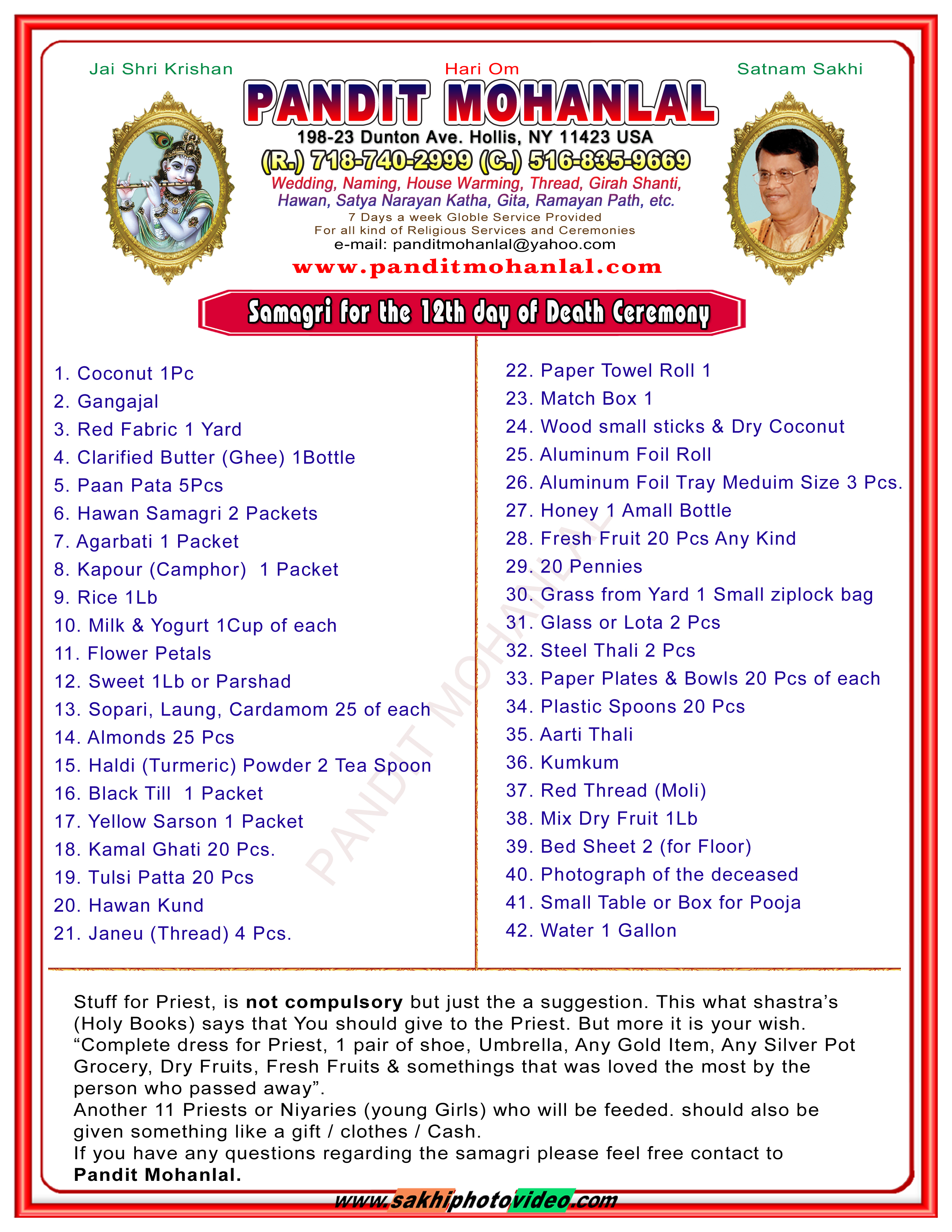 12th Day Ceremony Samagri