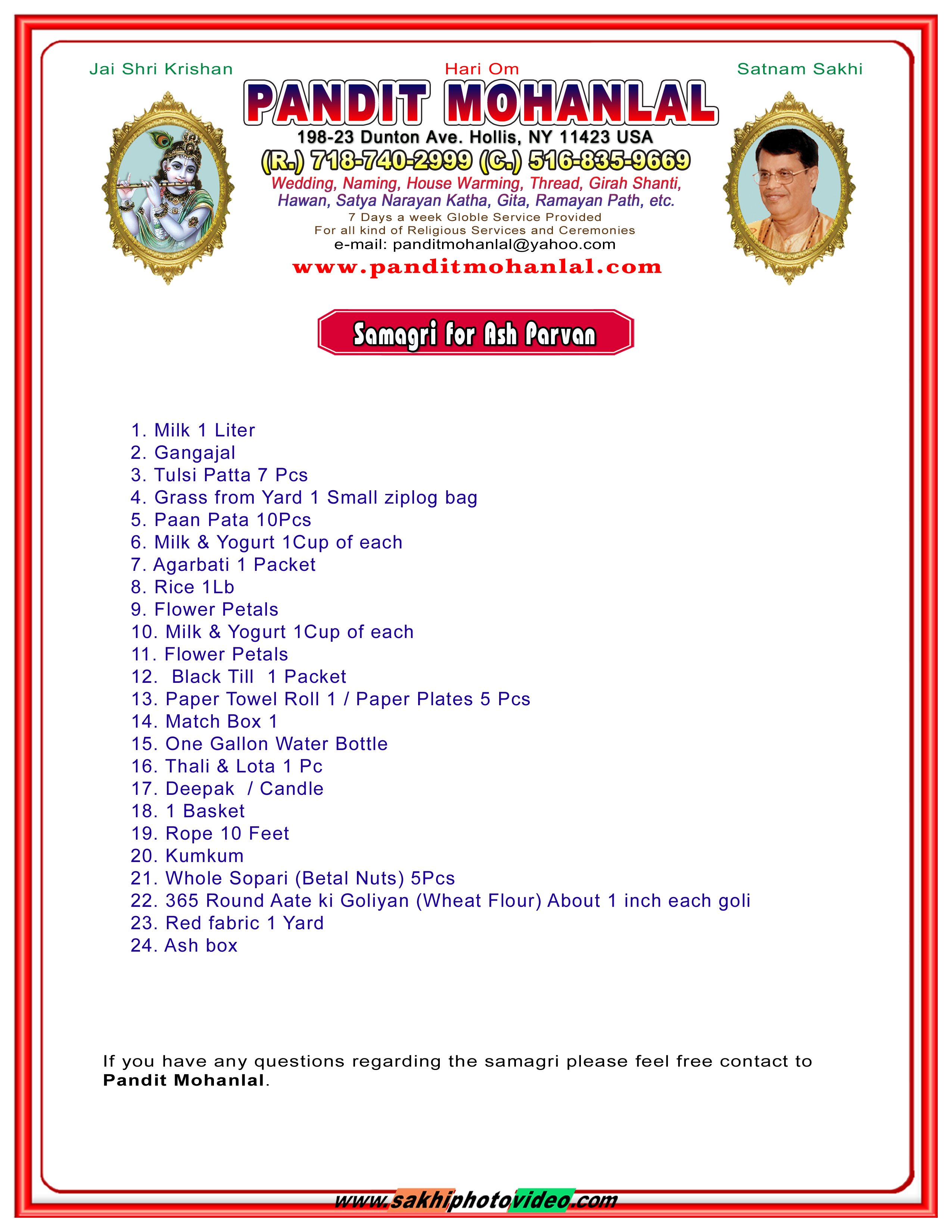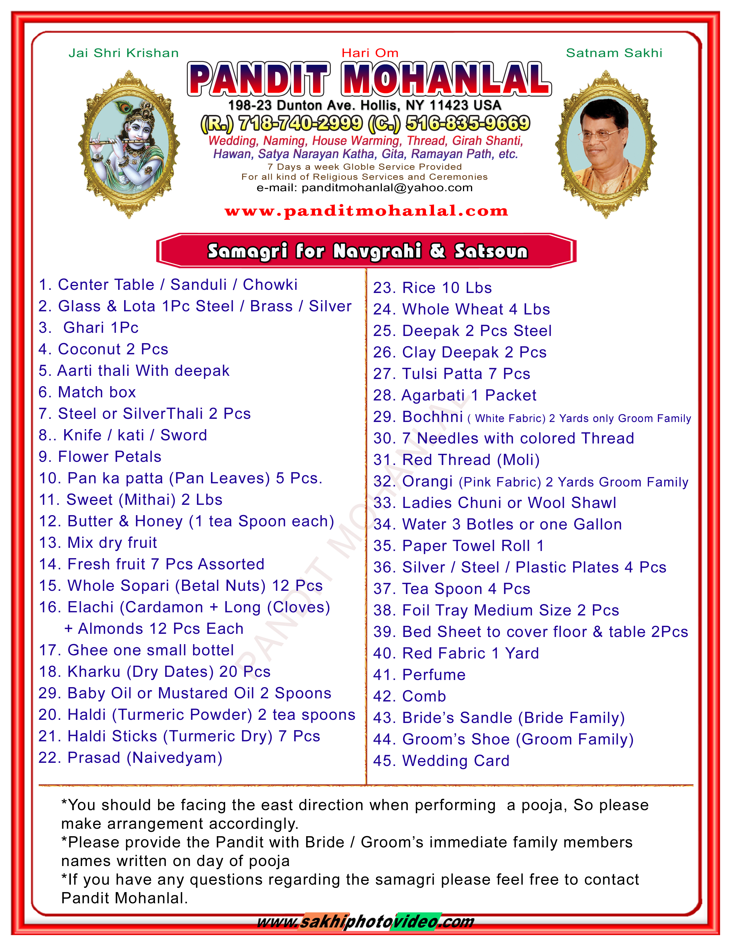 Navgirahi & Satsoun Samagri List