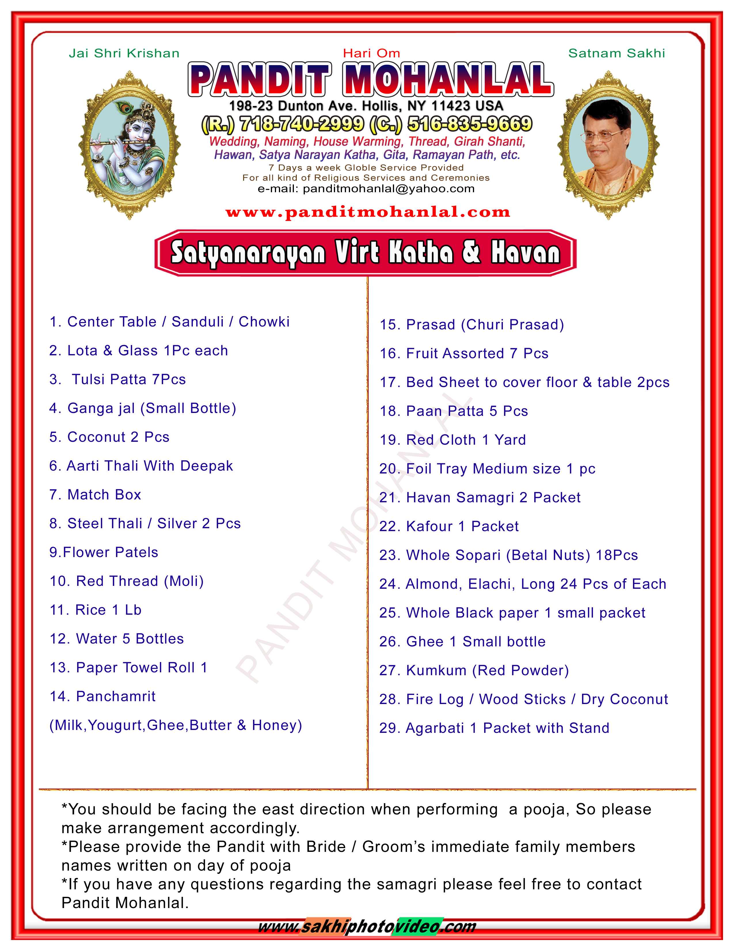 Satyanarayan Katha Samagri List