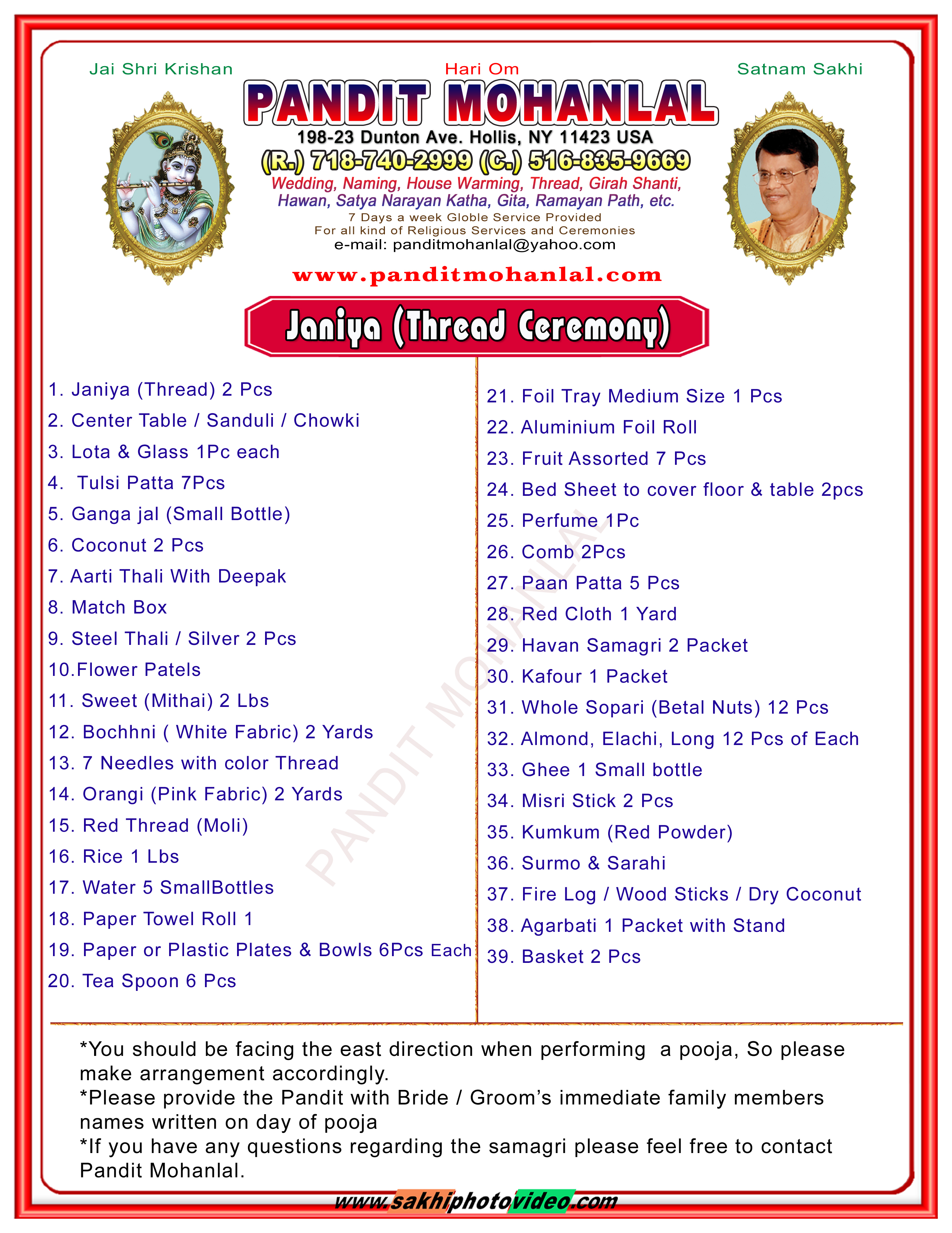 Thread Ceremony Samagri List