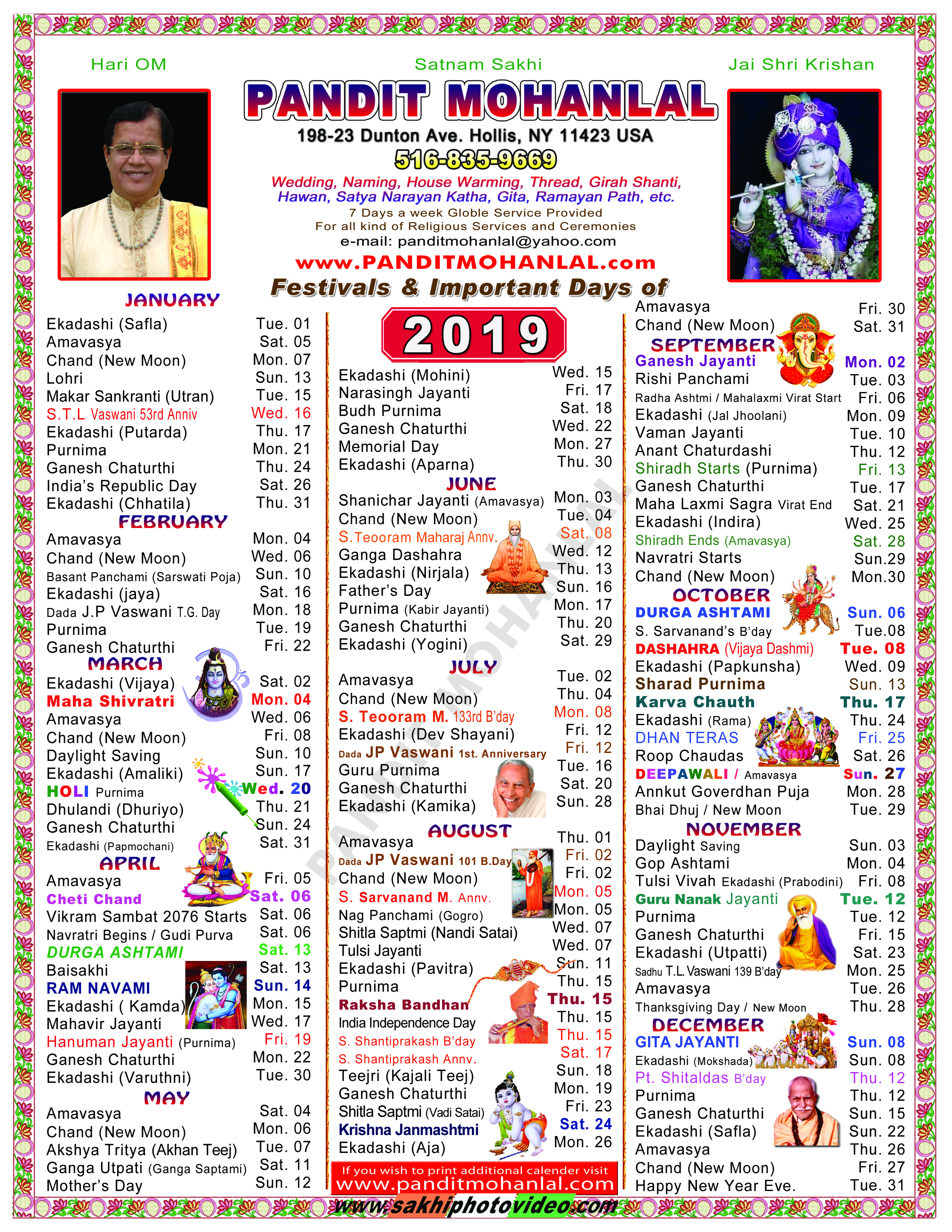 Hindu Calendar 2019